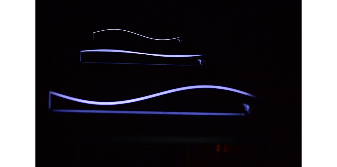 En Polifotonía, un sonido inaudible al oído humano viaja a través de cuerdas tensas y se hace visible mediante su interacción con ondas de luz, las cuales generan una composición visual en las que las frecuencias lumínicas se sincronizan y se transforman. “Ese sonido viaja por la cuerda y se puede ver”, explica la artista.