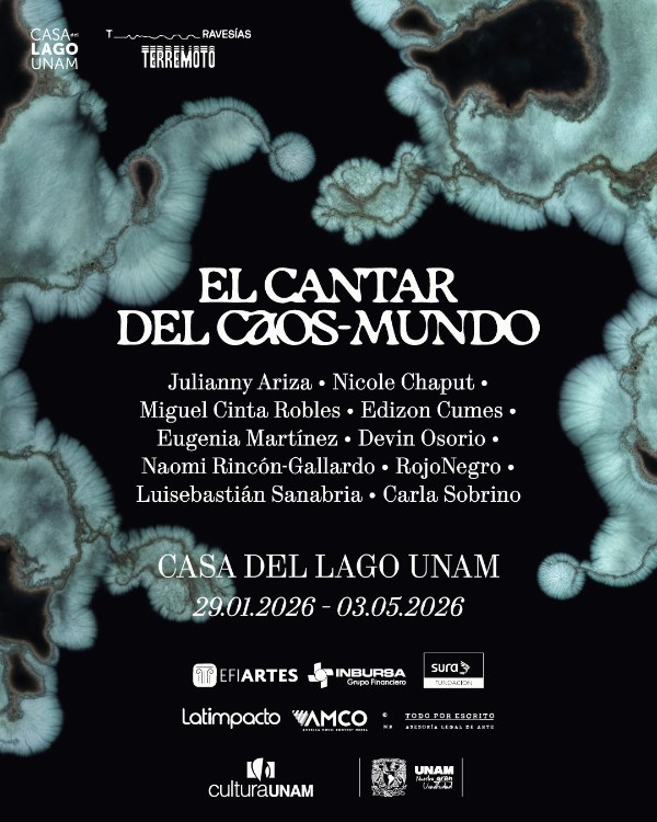 Casa del Lago UNAM en colaboración con Terremoto presenta El cantar del caos-mundo, una exposición que surge de la residencia de investigación homónima realizada entre República Dominicana y México, en 2025, como parte del programa Travesías Terremoto.