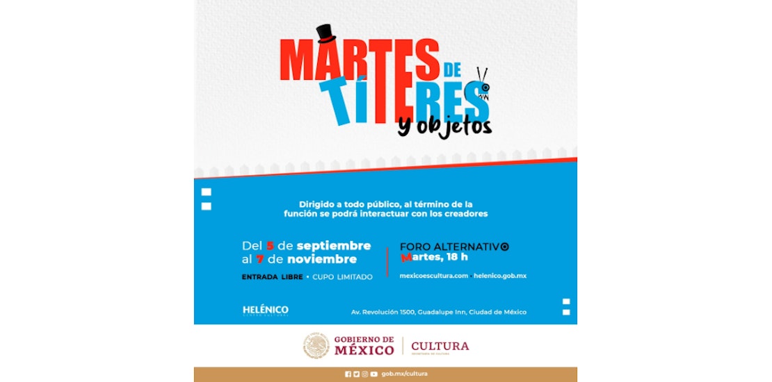 Los títeres y marionetas continúan desempeñando un papel fundamental en la narración de historias y la construcción de identidad en las comunidades, es por eso que el Centro Cultural Helénico invita al público a las actividades de este encuentro que se llevará a cabo todos los martes a las 18:00 horas, del 5 de septiembre al 7 de noviembre de 2023, en el Foro Alternativo.