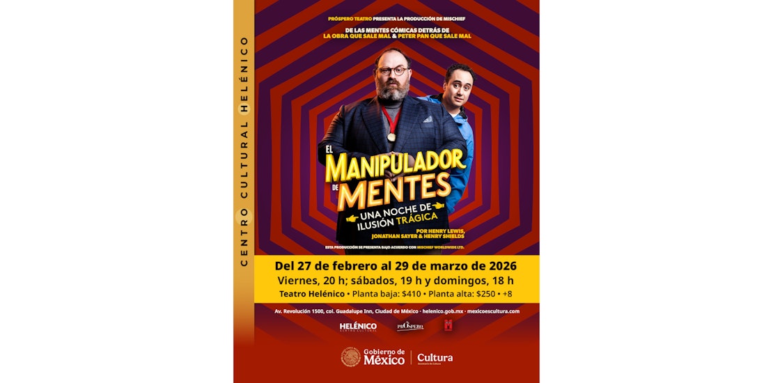 La Secretaría de Cultura del Gobierno de México, a través del Centro Cultural Helénico presentan El Manipulador de Mentes: Una noche de ilusión trágica, la celebrada comedia de magia de la compañía británica Mischief. Tras su estreno original en el Reino Unido y Nueva York, la obra marca su debut internacional al llegar por primera vez a México bajo la producción de Próspero Teatro, Camilla Brett y Jerónimo Best.