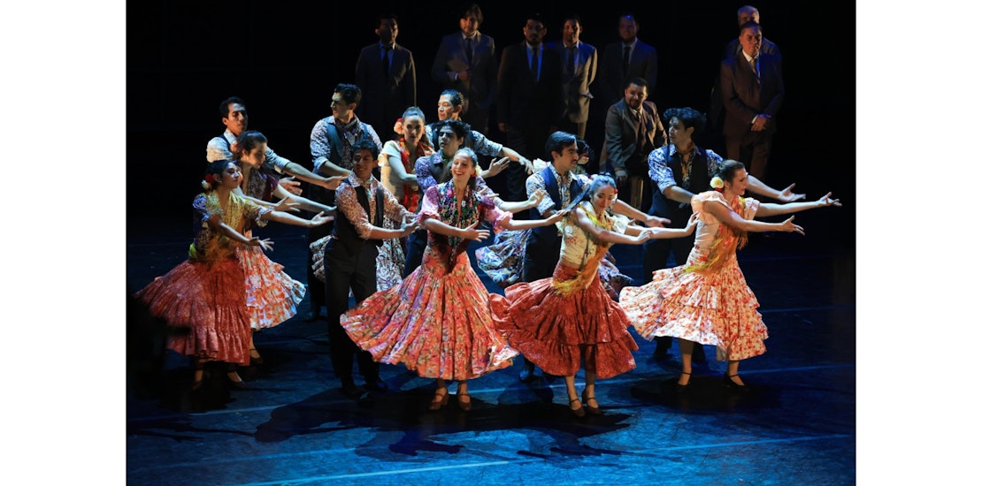 En un ambiente misterioso y enigmático, la protagonista desesperada realiza la célebre Danza ritual del fuego, momento icónico en el montaje que despliega una propuesta visual marcada por vestuarios de inspiración flamenca, resaltado por colores vivos, faldas largas y volantes que acentúan el movimiento y la intensidad.
