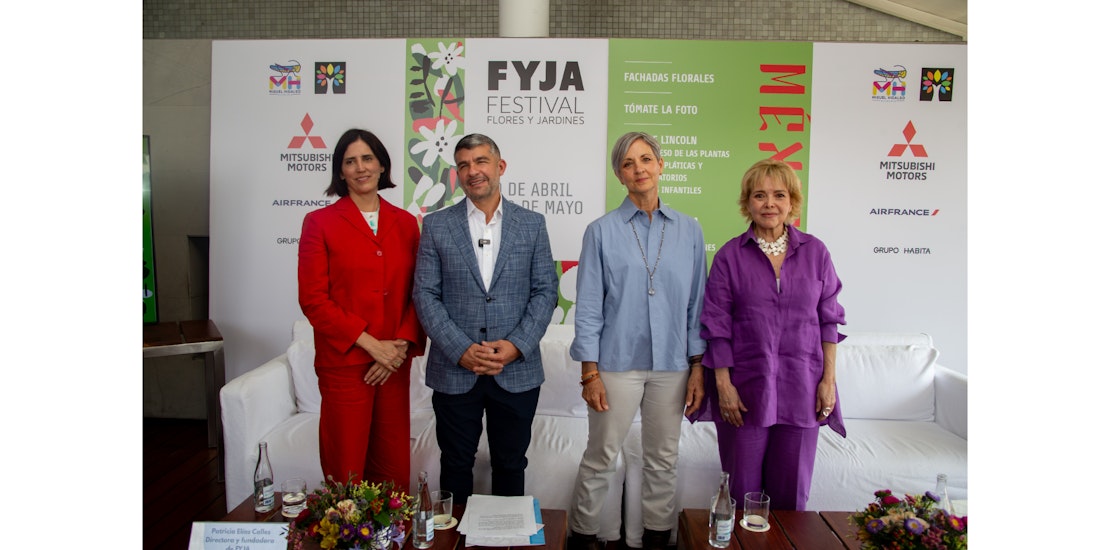 Boletín: Gilda Mejía / Órbita Central. De izquierda a derecha en imagen principal: Patricia Elías Calles, Directora y fundadora de FYJA; Mauricio Tabe, Alcalde de Miguel Hidalgo; Kathrin Grimm, Arquitecta paisajista y Gloria Maldonado, Diseñadora floral. Foto: Pablo Navarrete