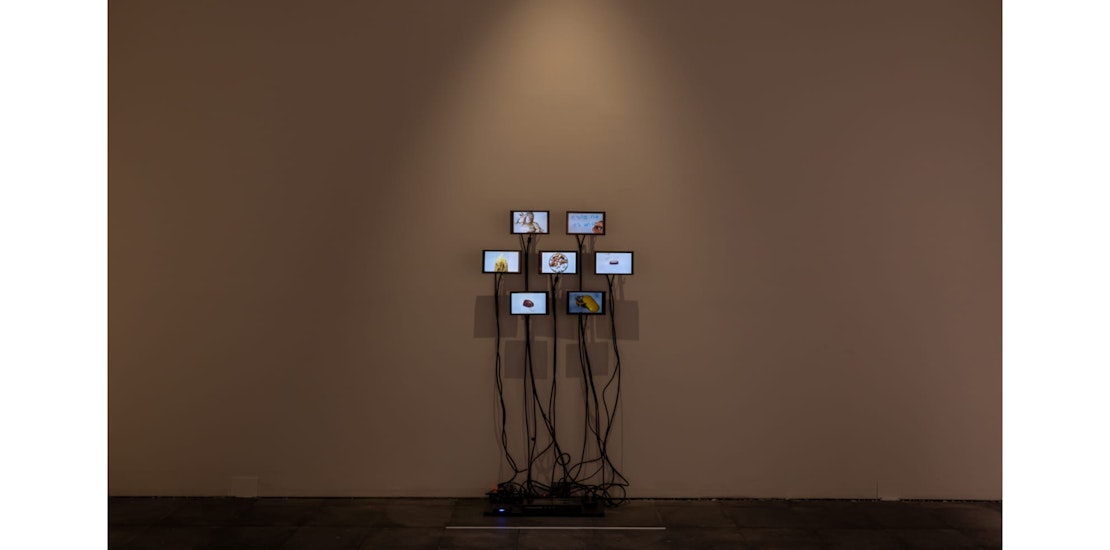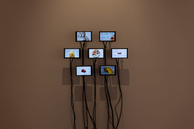 La obra, que está en exhibición en el Centro de la Imagen, se presenta como una instalación audiovisual compuesta por siete pantallas, disposición que remite a un pastillero semanal. Para Bordello, dicho recurso evoca las reacciones químicas, corporales y afectivas que se activan en el cuerpo. “Me interesa pensar el cuerpo humano dentro de un cuerpo electrónico: con cerebro, venas, ritmo, con una lógica orgánica”, explica.