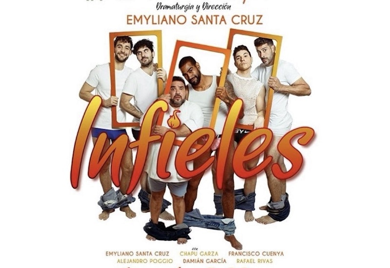 Infieles, que estará en el Teatro Milán (Calle Lucerna 64, Juárez, Cuauhtémoc, CDMX) a partir del 2 de junio bajo la producción de Ramsés López, la cual aborda la historia de Lucas y David. Todo comienza cuando invitan a un amigo a pasar unos días con ellos. En este ambiente, entran en escena cuatro personajes más que harán todo un lío. Tres relaciones se entrelazan creando momentos delirantes entre los participantes con un cuadro de mentiras que se cubren con más mentiras, idas y venidas y malentendidos.