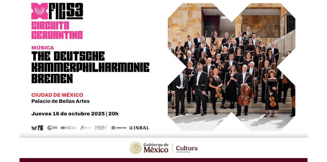 La Sala Principal del Palacio de Bellas Artes recibe a The Deutsche Kammerphilharmonie Bremen, de Alemania, el próximo jueves 16 de octubre de 2025, a las 20 h, como parte del Circuito Cervantino de la 53 edición del Festival Internacional Cervantino (FIC).