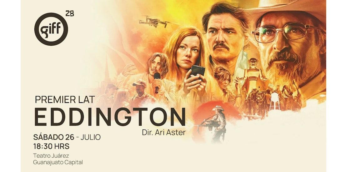 GIFF, en colaboración con Universal Pictures y Cine CANÍBAL, se enorgullece en anunciar la premiere en Latinoamérica de la aclamada y muy esperada película Eddington, dirigida por el célebre cineasta Ari Aster, una de las nuevas voces del cine de género que se ha consolidado durante los últimos años. Podrá verse en una gala especial el sábado 26 de julio a las 18:30 hrs en el Teatro Juárez, marcando con entusiasmo el regreso del encuentro cinematográfico a la capital guanajuatense.