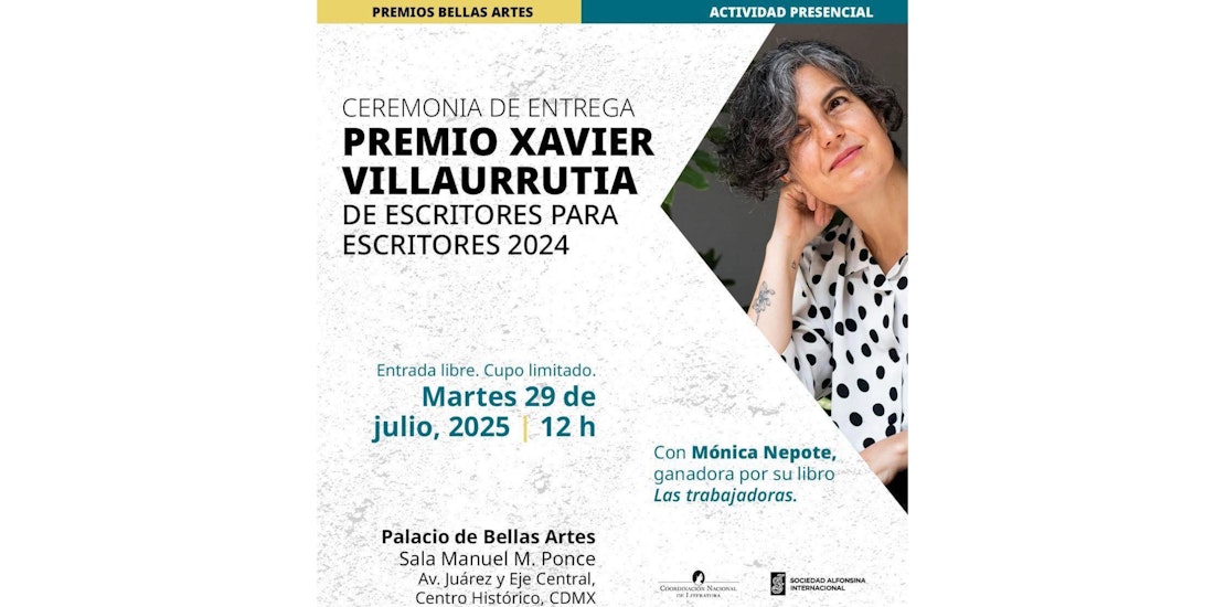 La Secretaría de Cultura del Gobierno de México y el Instituto Nacional de Bellas Artes y Literatura (INBAL), a través de la Coordinación Nacional de Literatura, entregaron el Premio Xavier Villaurrutia de Escritores para Escritores 2024 a Mónica Nepote por su obra Las trabajadoras, un libro que parte de la poesía y recupera el lenguaje de la costura y la mecanografía para reivindicar el trabajo de las mujeres.
