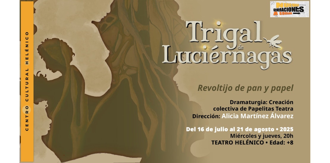 Gestada desde la búsqueda de un lugar valiente en el que se pudieran abordar temas como el gozo de ser mujer, las diferentes formas de nacer, el sistema del patriarcado, el cuidado de la naturaleza y la osadía de la infancia llega al Teatro Helénico la creación colectiva: Trigal de luciérnagas, con temporada del 16 de julio al 21 de agosto de 2025.