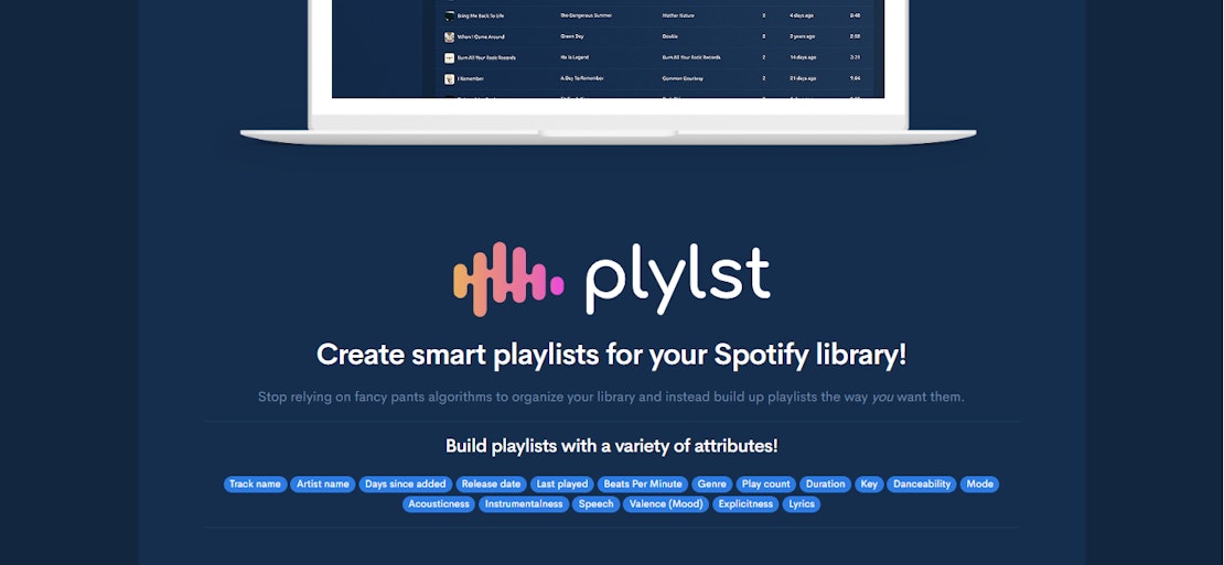 Quiero desesperadamente esa habilidad en Spotify, por lo que PLYLST es mi intento de construir lo que creo que más me falta: esa capacidad de armar listas de reproducción dinámicas basadas en muchos atributos diferentes.