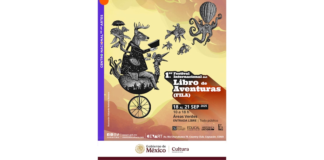 Para incentivar la lectura en los públicos más jóvenes y convertirse en un espacio de difusión para diversas expresiones literarias como el cómic y la ciencia ficción, la Secretaría de Cultura del Gobierno de México, a través del Centro Nacional de las Artes (Cenart), y el Fondo de Cultura Económica (FCE) presentan la primera edición del Festival Internacional del Libro de Aventuras (FILA), que se llevará a cabo del 18 al 21 de septiembre de 2025.